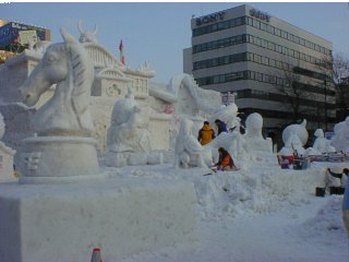 札幌にやってきました。プレ雪祭りです。雪祭りは2月5日からですから今日は準備中のプレです。あと二日ということもあってほとんどできていましたが、製作中の風景を見ることができました。 |