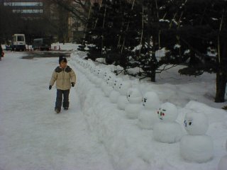 どうも写真が暗いです。でも良い天気でしたよ。ここは道庁の雪だるまです。 |