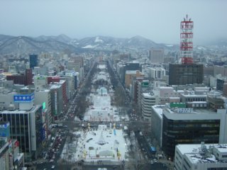 登ってみると雪祭り会場を一望できました。 |