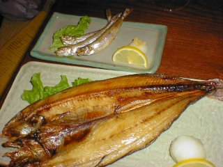 ホッケとししゃも。もちろん地物です。ししゃもは関西のそれと全然違いました。これが本当のししゃもですね。 |