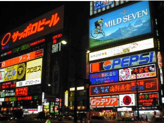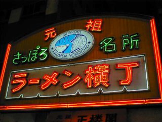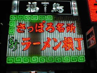 またまた有名なすすきののネオンです。この写真の真中下あたりに「新ラーメン横丁があります。」 |