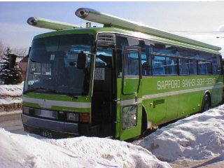 こんなちょっと古めのバスで小樽にきました。道中はすごい雪の中の峠でした。ちょっとこわいぐらいのスピードで走っていきます。さすが雪国のバス!慣れてるねぇ。 |