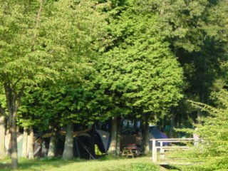 ![]() | もう3日目の朝。相変わらず気持ち良いピーカンの朝です。木の下にあるテントが我が家。朝飯たべてテントをたたもう。えーもう帰るんや。2泊3日では少なすぎ。 |