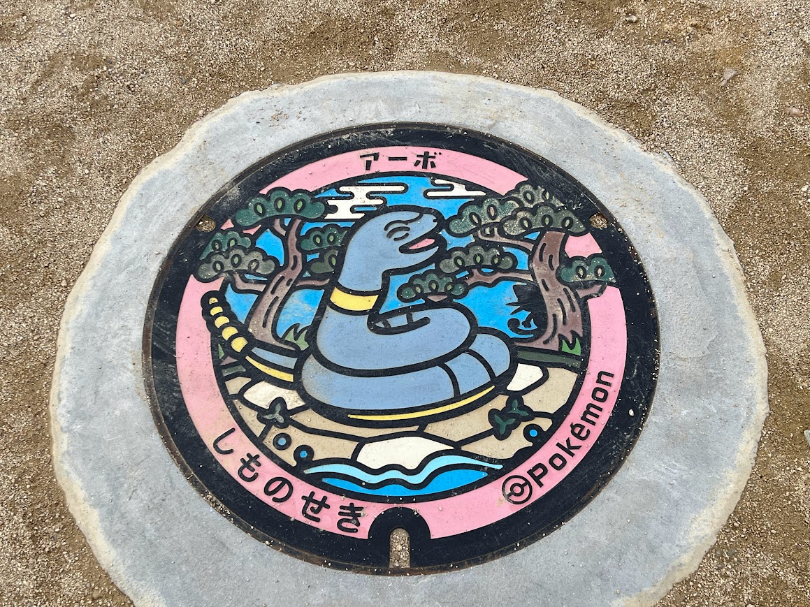 もうひとつ、みどころはポケモンのマンホール。島の中に2つありました。そのうちのひとつがこれ。 |