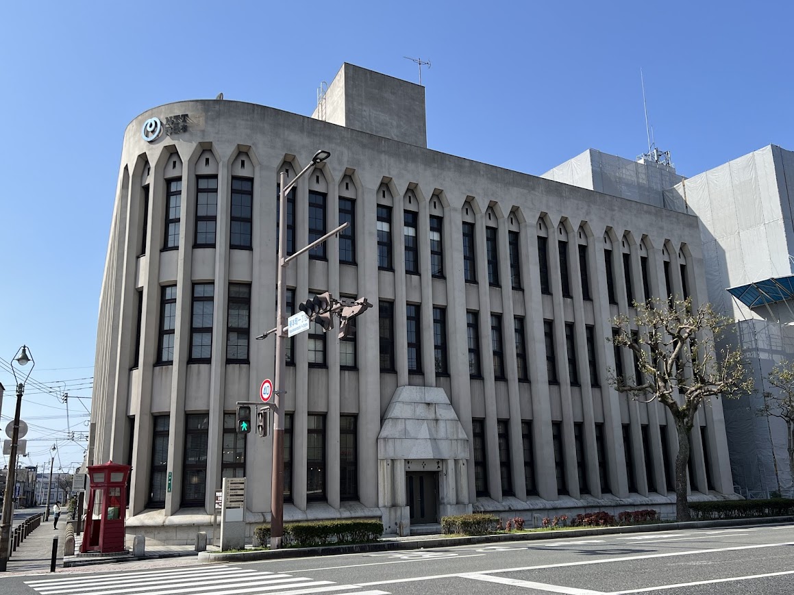 現在の北九州銀行門司支店。九州鉄道門司駅跡地に建設された横浜正金銀行の門司支店でした。横浜正金銀行は外国為替の取り扱いを専門としていた特殊な銀行で、この支店設置は門司港の国際性を反映し、「門司で当時の国際貿易のニーズに応える」という特別な期待が寄せられていました。 |