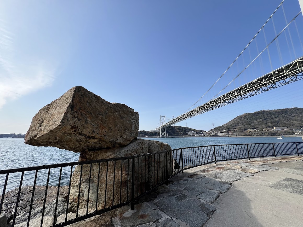 関門海峡を見ながら歩ける遊歩道。その遊歩道の途中にある絶妙なバランスで岩を乗せている「奇岩」があります。 |