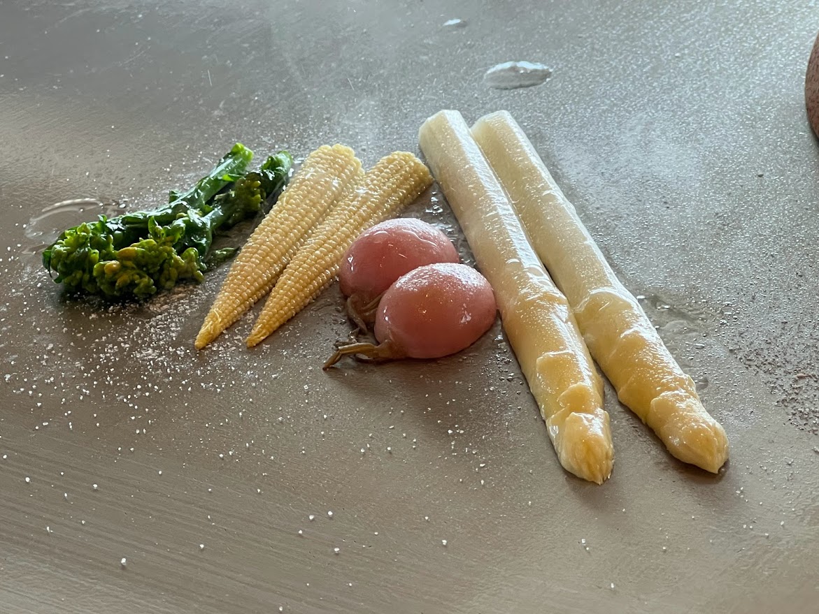 焼き野菜に続いてお魚。鉄板の美しさとお皿のプレゼンテーションがさざんかはとてもいいんだよねー |