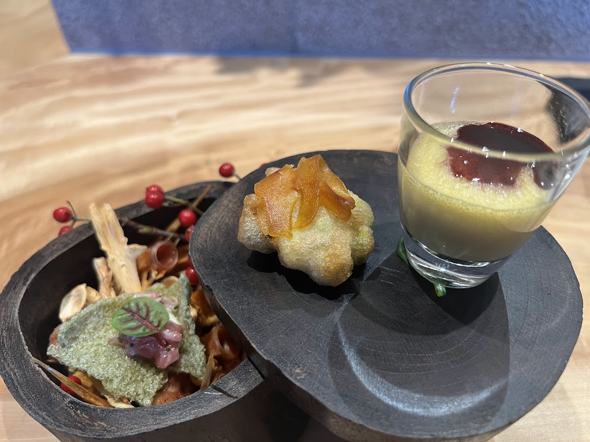 JリーグYBCルヴァンカップ準決勝第2戦 名古屋グランパス VS 横浜F・マリノス を観に行きました。試合前にフレンチレストランAOIでランチ。 アミューズはこの3品。ガラスの器に入ったフォアグラのロワイヤル、どこかで食べたことあるー |