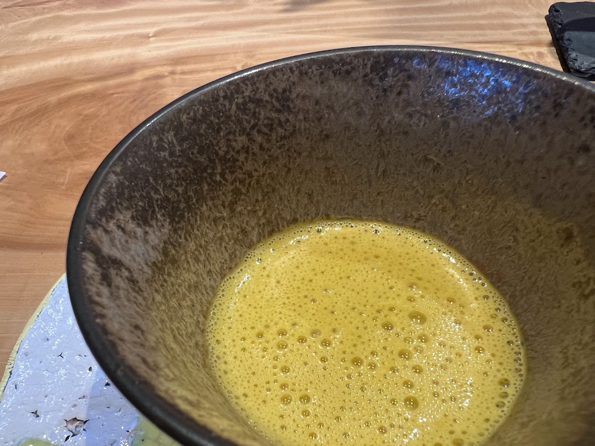 スープはお抹茶茶碗で。これもどこかで食べたスタイル! |