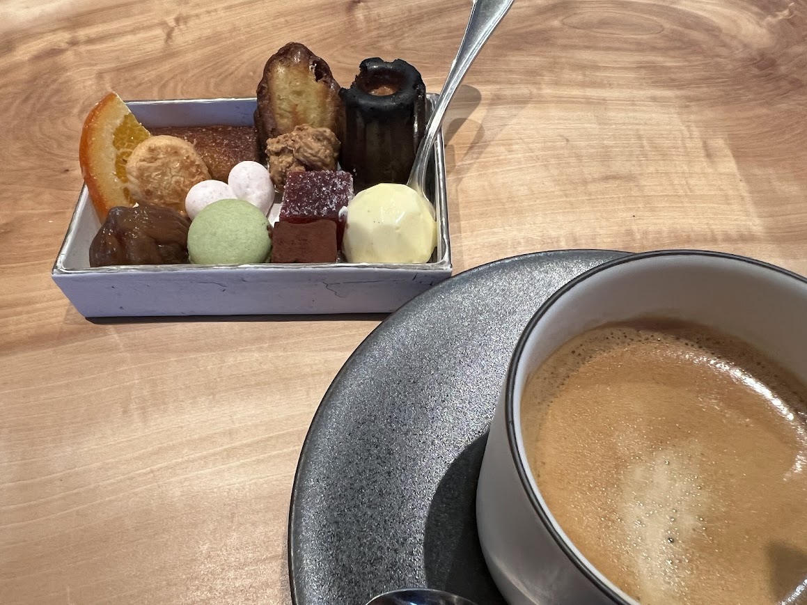 コーヒーと一緒に出てきた小菓子。こんなにいっぱい!いつも食べているレストランでは3つぐらいのもの。シェフと話うぃしていたら栄に移転したグリシーヌのシェフだったとのこと。そりゃ知ってる味だわ。めちゃくちゃ既視感があったのはそのせいでした。小菓子が多いのもグリシーヌらしさ。納得です。 |