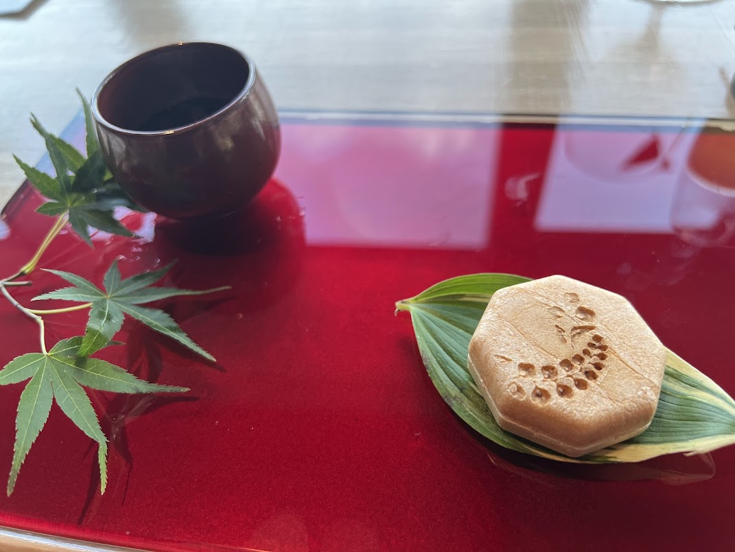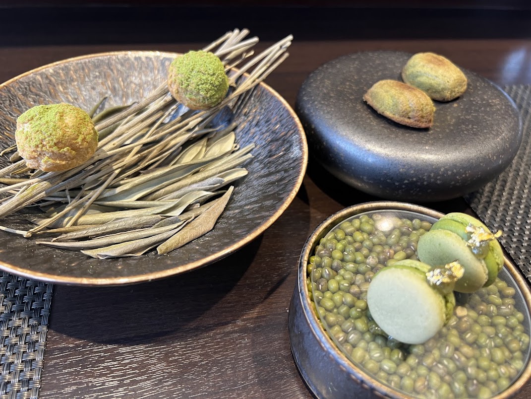 小菓子は緑色!夏の食材をおいしくいただきました。 |