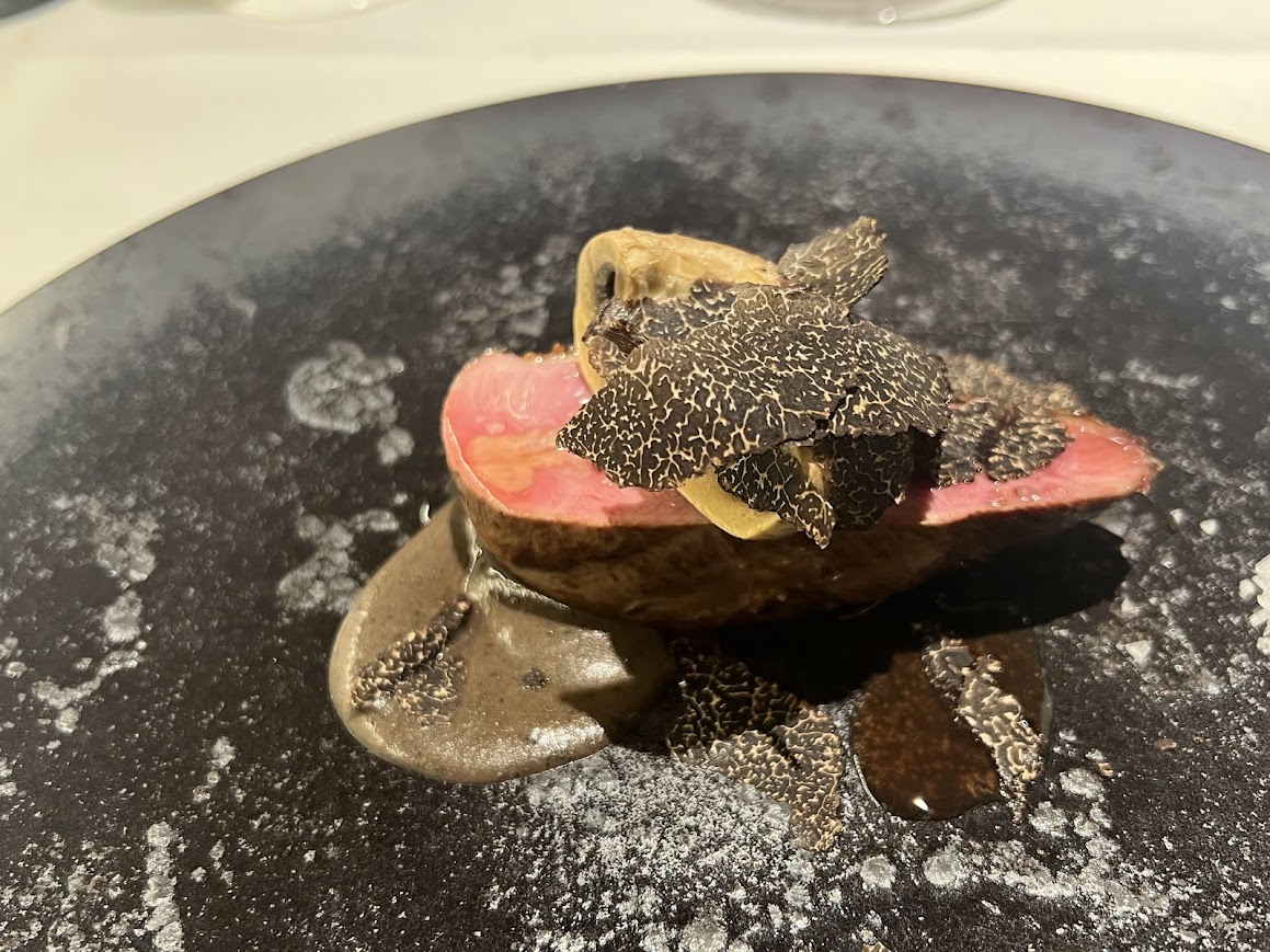 こちらも冬のスペシャリテ。鴨肉。 こちらは宮後県の野田鴨です。 |