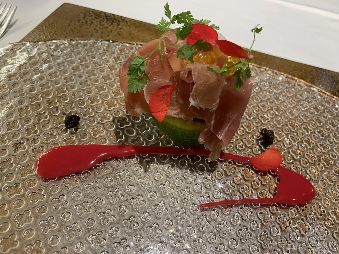 大好きな一皿。イチジクとブラータチーズ、フランス産の生ハム。ハムの塩味とイチジクがいい感じ。いつも楽しみにしています。 |