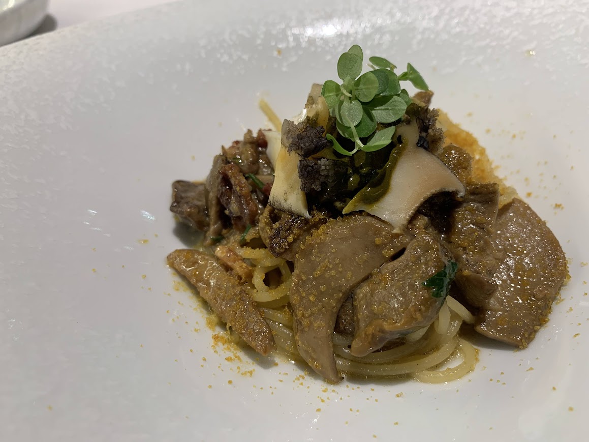 イタリア産のボルチーニ茸と京都産のアワビのパスタ。大好きなものがあふれてる! |