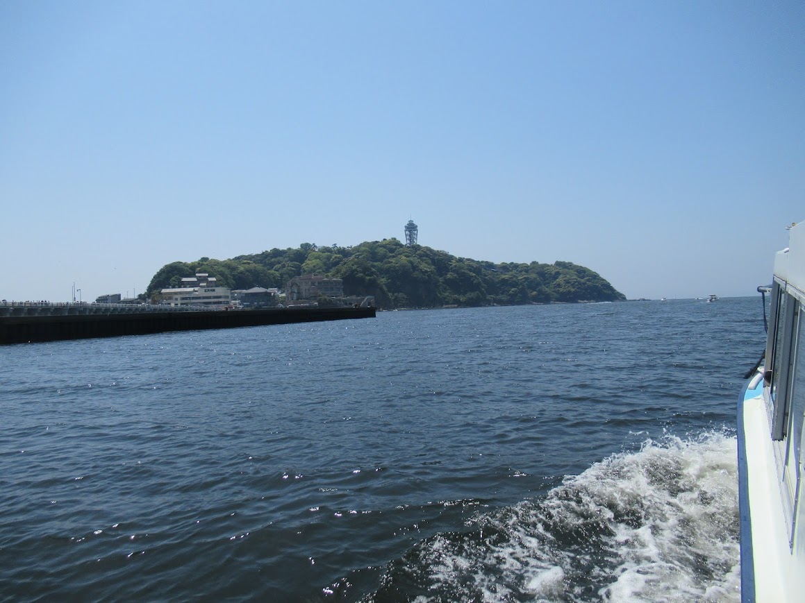 遊覧船で江ノ島の岩屋まで一気に行くことに。 |