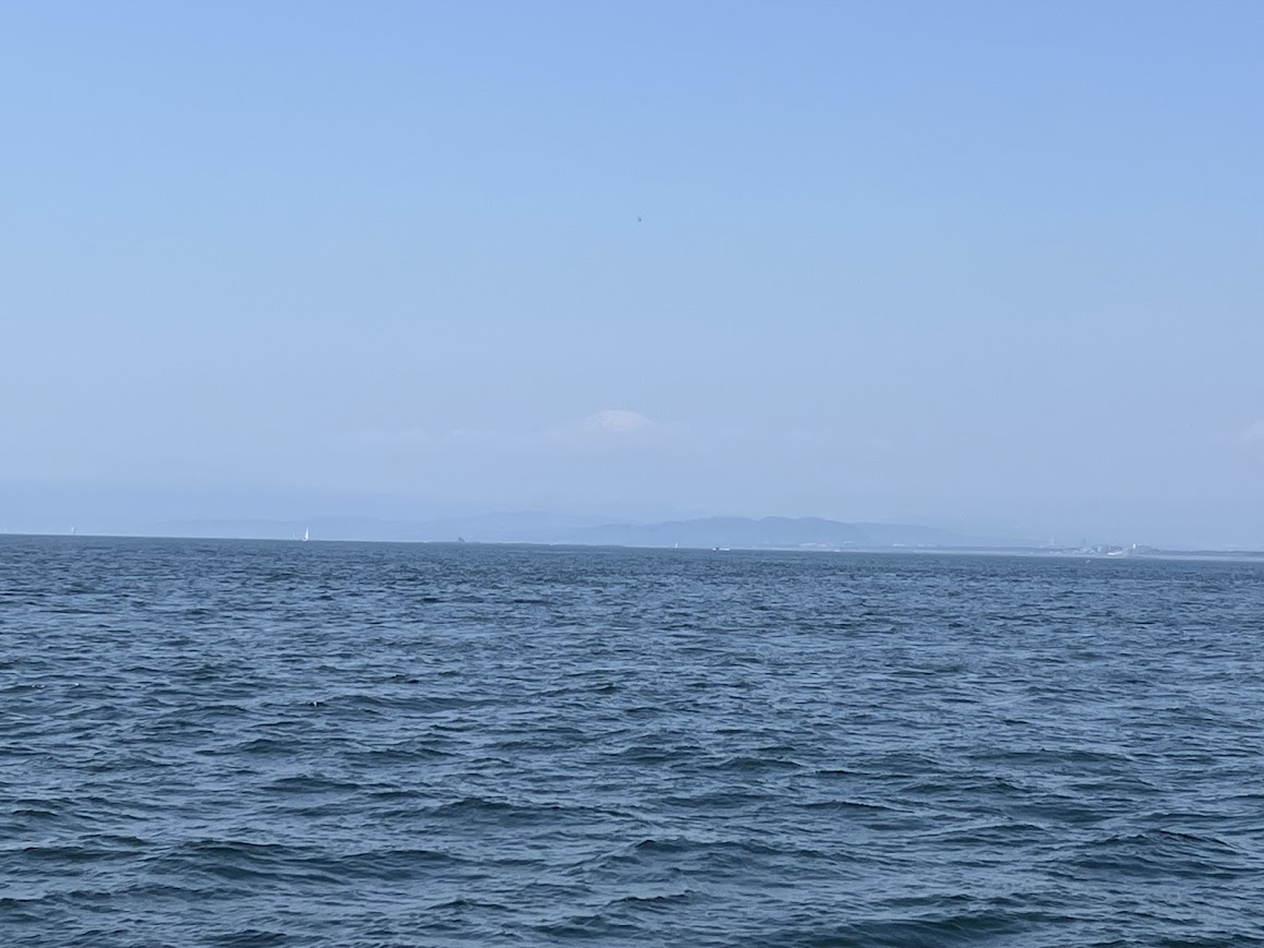 遊覧船から富士山が見えたよ。写真に撮るとちょっとわかりにくい… |