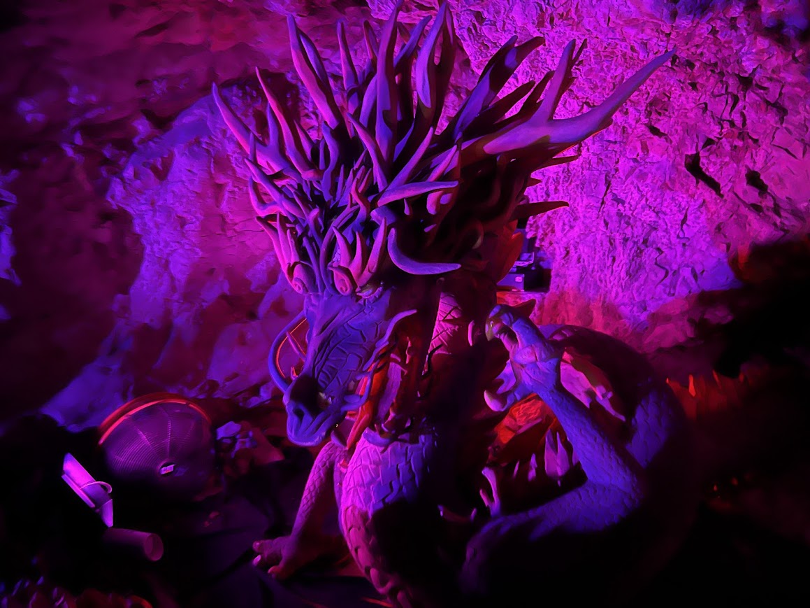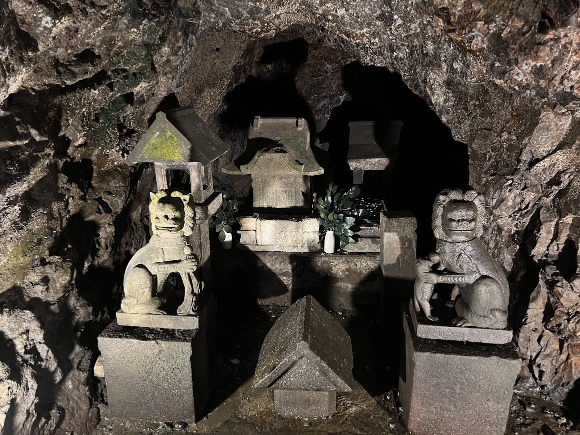 江の島で古くから言い伝えられている龍神伝説を体感できるところがあります。手をたたくと龍神の鳴き声が聞こえます。なんだかテーマパークみたいです。 |
