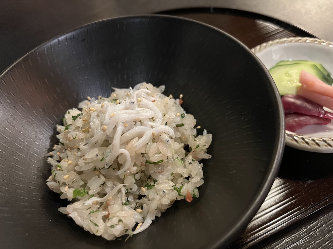 〆は地元のしらすご飯でおなかいっぱい。つぎは和食のみでいきます。 |