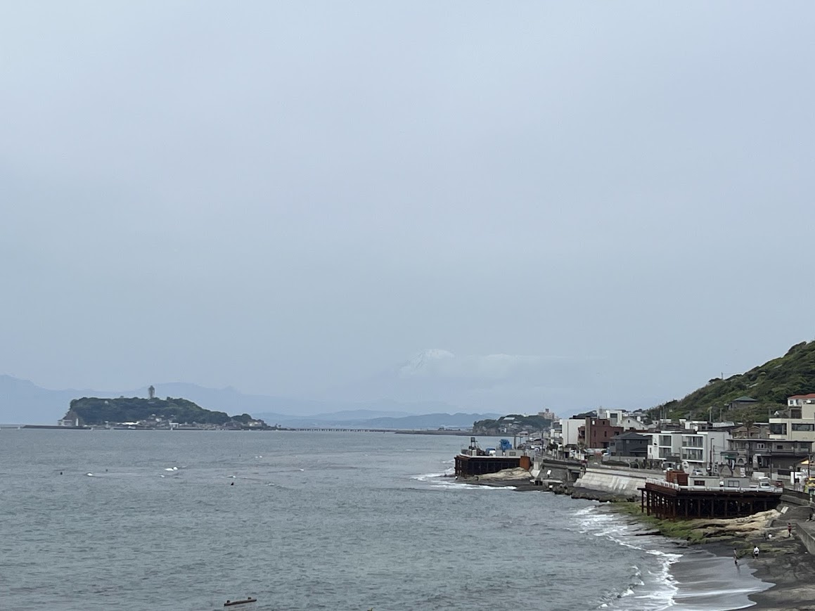 毎日富士山は見えているけれど、くっきり富士山が見えてなくて。最終日も富士山を求めて稲村ヶ崎へ。 見えてるけどなぁ・・・ |