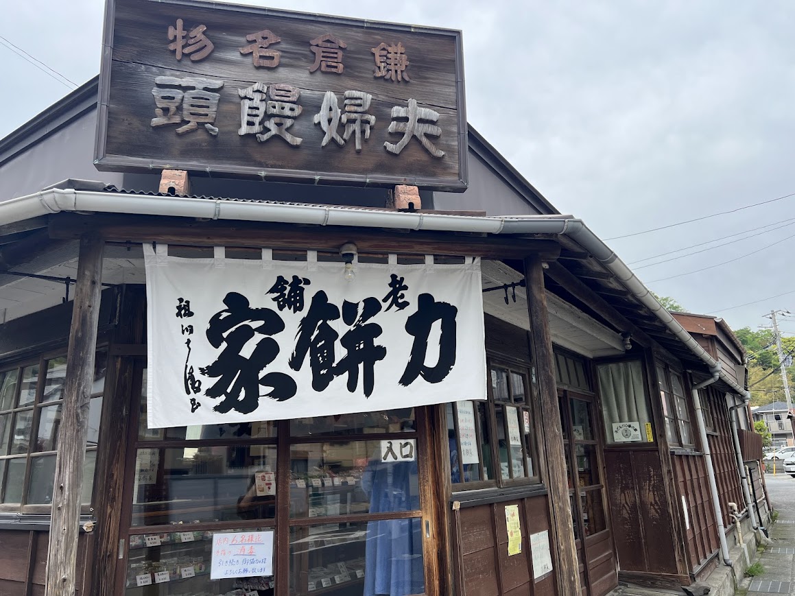 鎌倉ワイナリーの近くにある和菓子屋さん。鎌倉するがやの本店で塩豆大福を食べました。食べてばっかりでちっとも前に進まない… |
