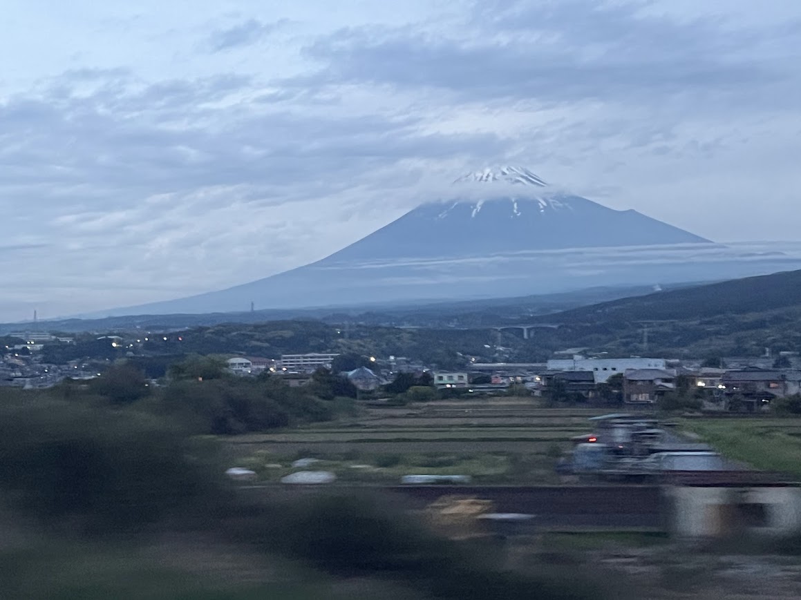 鎌倉にいる間はくっきり富士山が見られなかったけど、帰りはきれいな富士山でした。 |