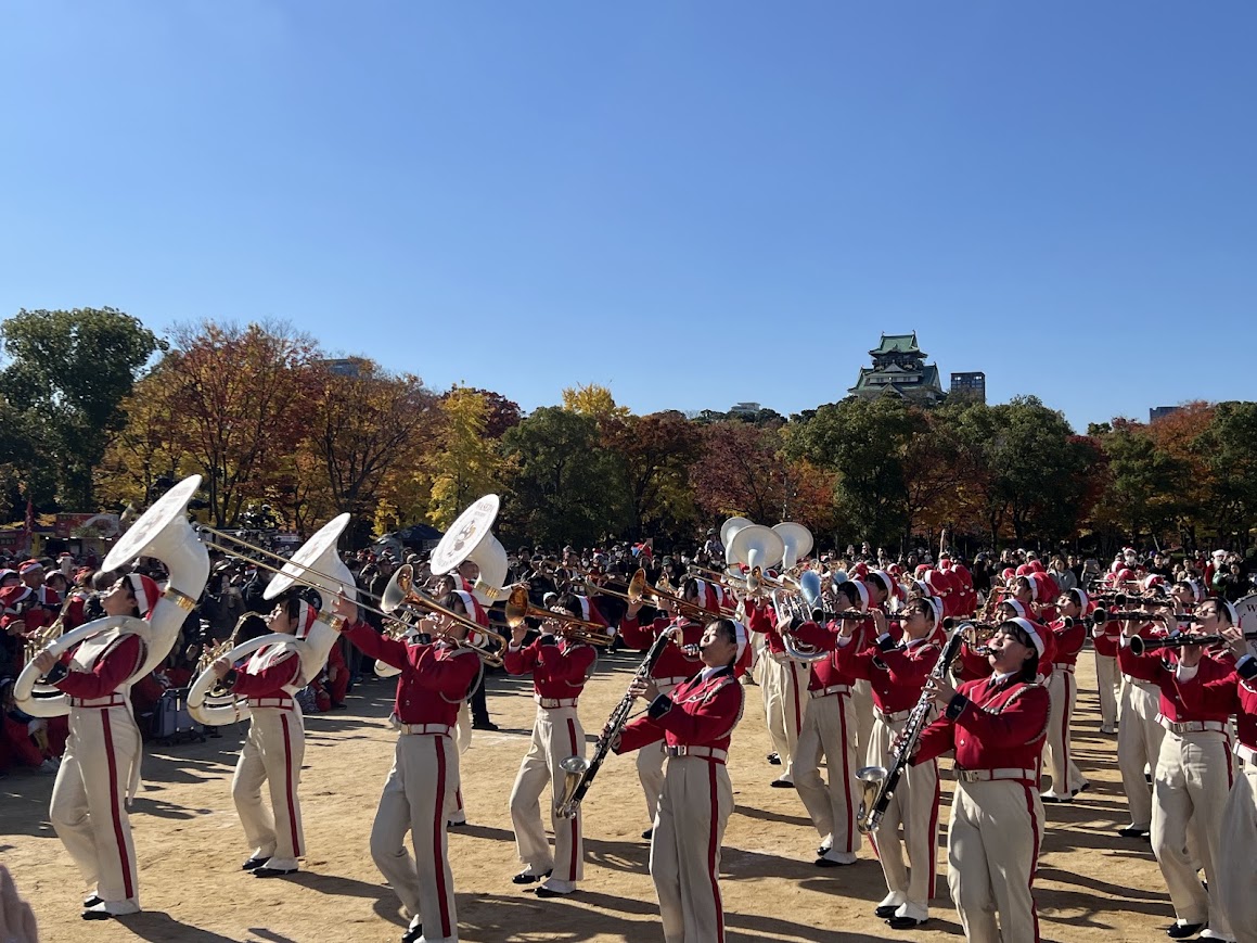 マーチングバンドも出てきて大阪城をみながら楽しみました。ベアトリスも楽しんでいてよかったー |