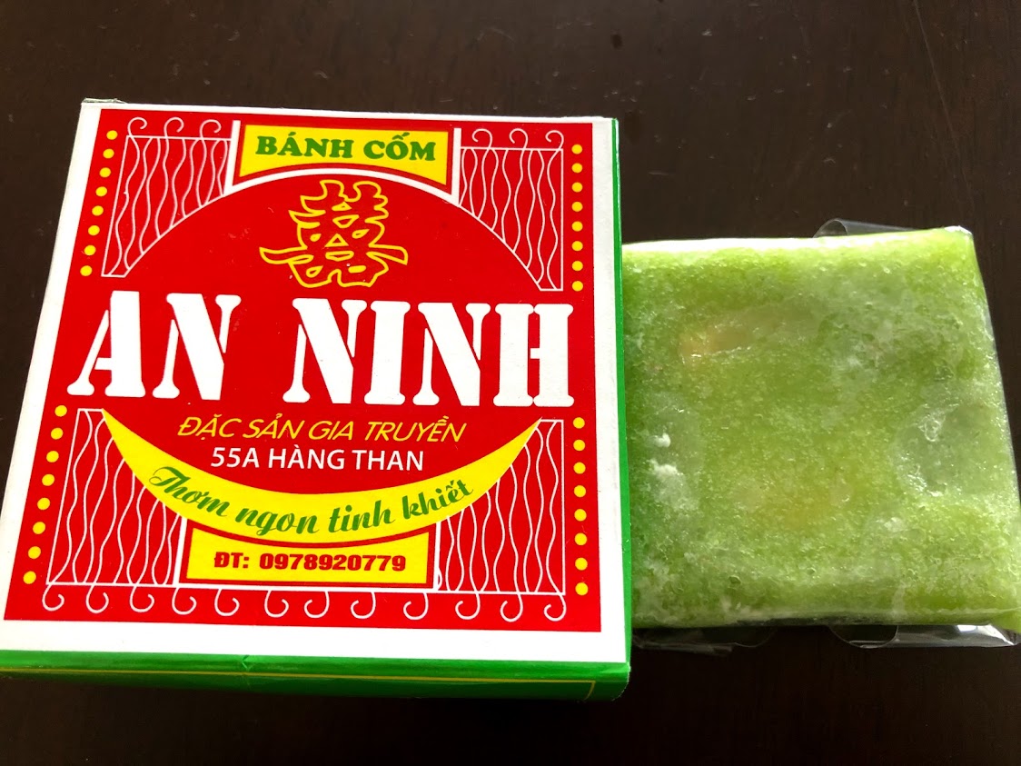 ベトナム・ハノイのお菓子「バインコム」。 ういろうみたいなお菓子です。 自分で買ったのではなくてレストランでデザートとして出てきたものです。 |