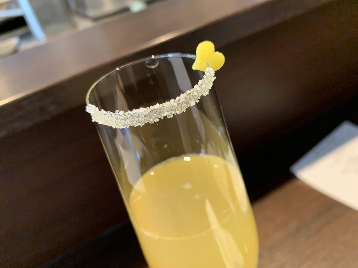 歌舞伎の前にミシュラン一つ星のお気に入りレストランでランチ。 季節のノンアルカクテル。いつもかわいい。 |