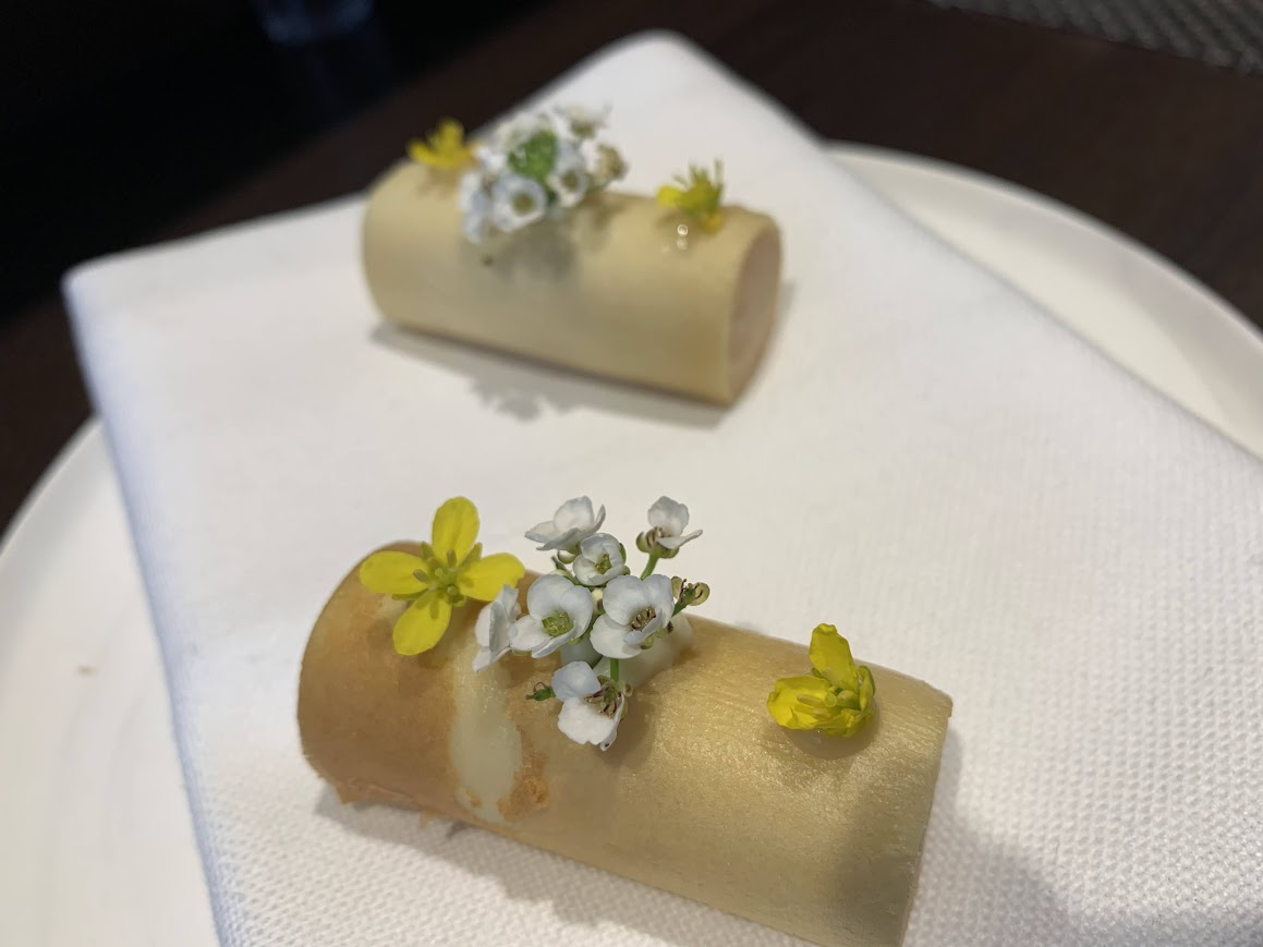 この季節のアミューズはカリフラワーづくし。カリフラワーと蟹のクリームが中に入ってます。 |
