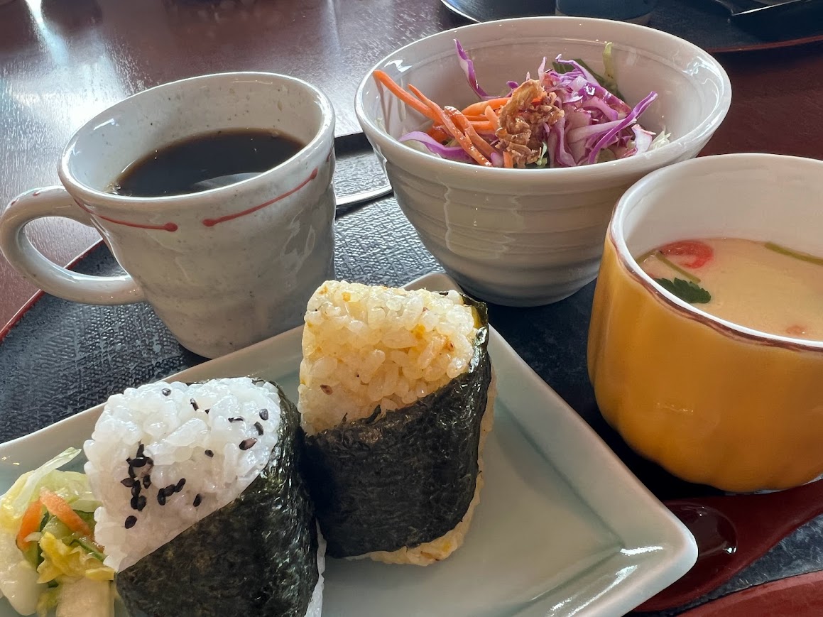 週末までにお友だちと行ったところ。「花ごよみ」のモーニング。 おにぎりと茶碗蒸しがつくのがスキ。 |