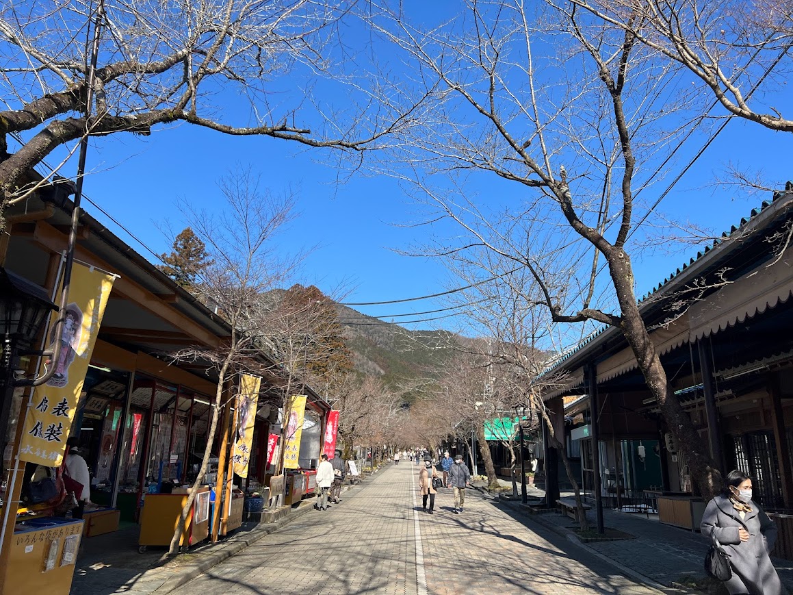 「谷汲山華厳寺」の参道に到着。 桜の参道は春になると桜のトンネルになると思う。今日はとても静かな参道です。