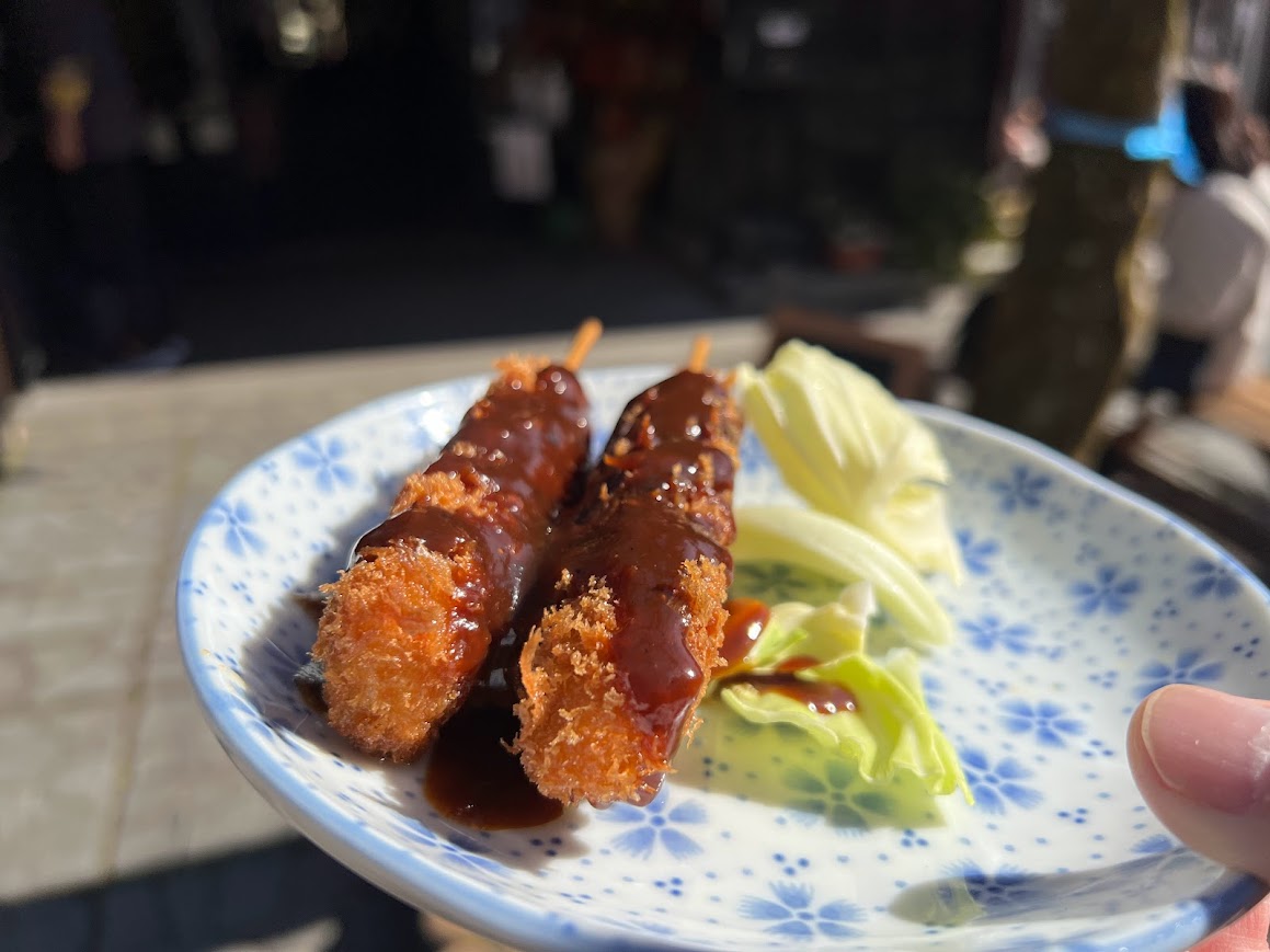 参道で串カツも食べました。 |