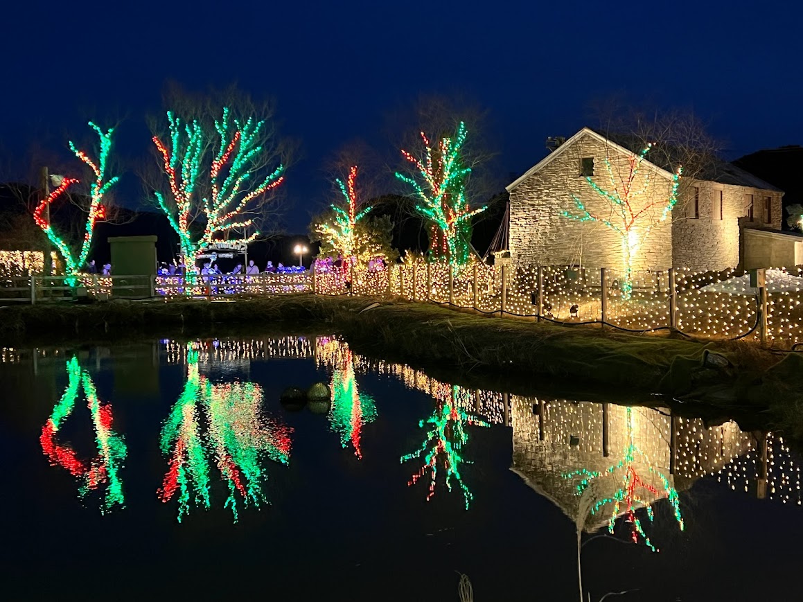 池周りではライトアップされた建物やイルミネーションが水に映り込んでとてもきれいでした。 |