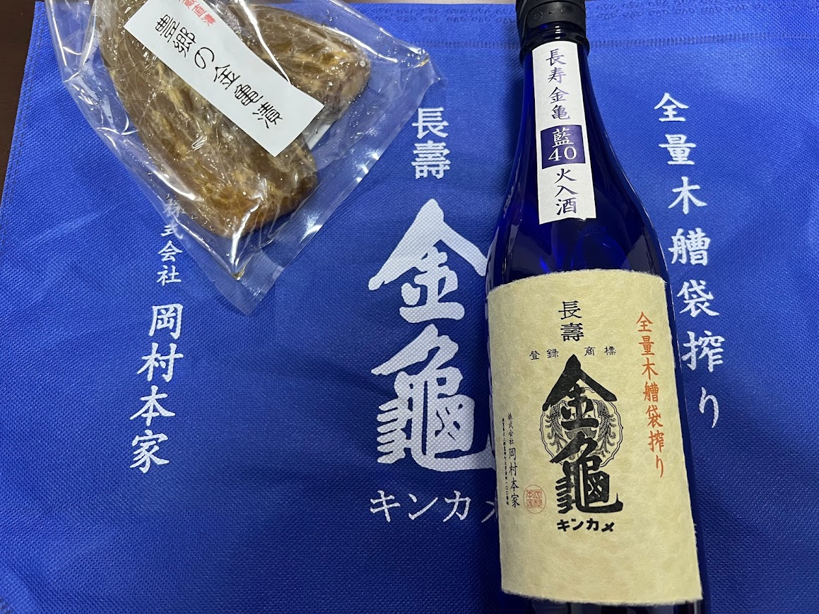 酒蔵で買ったお酒と奈良漬け。 |