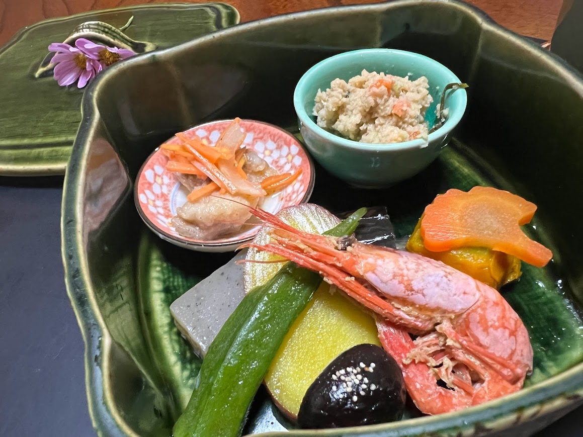 岩崎城のあとは和菓子屋さんに行って季節の和菓子をお土産に買ってあげました。その後ふく運へ和食を食べに。鯛のあら煮なんかもきれいに食べてくれました。日本語がとても上手な韓国の女の子でした。お勉強、がんばってね! |