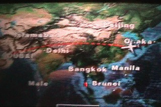 エミレーツ航空はアラブの航空会社です。アラブのお金持ちだけあって豪華です。エコノミーでもアイマスクや歯ブラシセットをくれました。機材もA340というエアバスの最新鋭機で快適です。客室乗務員の方はアラブのそれらしい制服でとても感じのいいヒトたちでしたよ。今後も愛用させていただきます。写真は経由地のドバイへ向かって出発したところ。現在は韓国上空!?