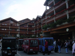 もう夕方近くになりましたが、なんとかツェルマットへ到着。ツェマットは環境の関係からガソリン自動車が走れません。ここ駅前ではこんな電気自動車のタクシーがいました。早々、ホテル「ヴェルシェン」に電話をして迎えにきてもらいます。お迎えのクルマもやっぱりこんな電気自動車でした。そうそう、ここでチューリッヒから送ったスーツケースをゲット。タバコもOKになりました。