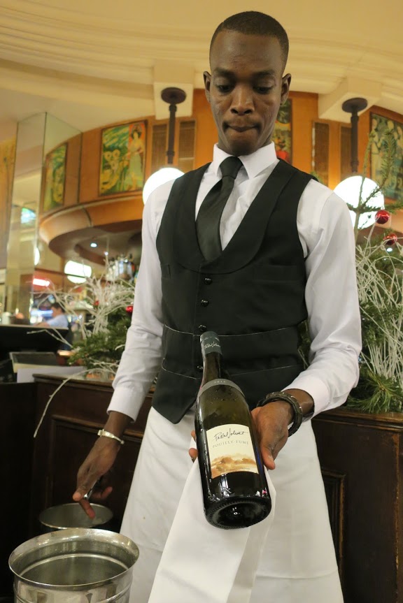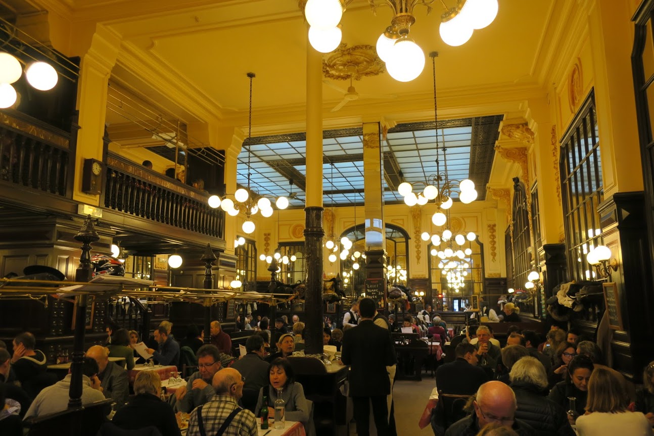 中はこんな感じ。1896年へタイムスリップしたような店内です。 当時のまんまだそうです。 ところせましと並んだテープルは満員。ローカルお気に入りのレストランなんですね。 |