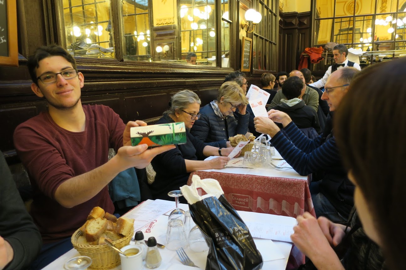 ランチ食後、歴史あるレストラン、『ブイヨン シャルティエ』の絵はがきをプレゼントしてくれました。 すばらしい、やっぱり100年タイムスリップしてたようです!! |