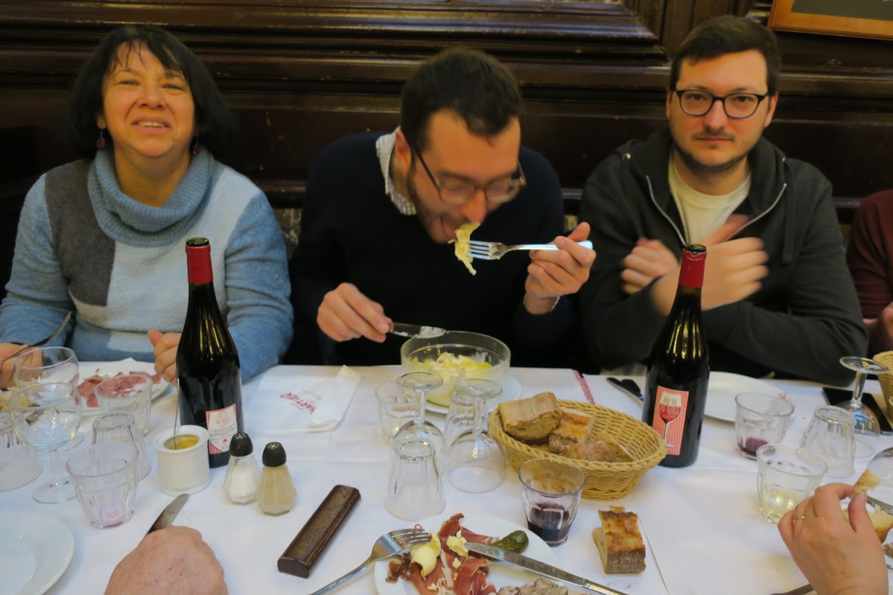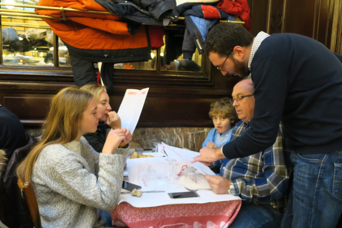 隣りのテーブルに座られたファミリーはスペイン人でした。 なんとフランス語のメニューをスペイン語で説明してあげるJC。このお店はフランス語のメニューしかないんです。 いいなぁ、いろんな言葉が話せて。 スペイン語と英語とフランス語が話せたらもう中国と日本以外の国は大丈夫やもんなぁ。 さらにJCは日本語勉強中。もう無敵やな。 |