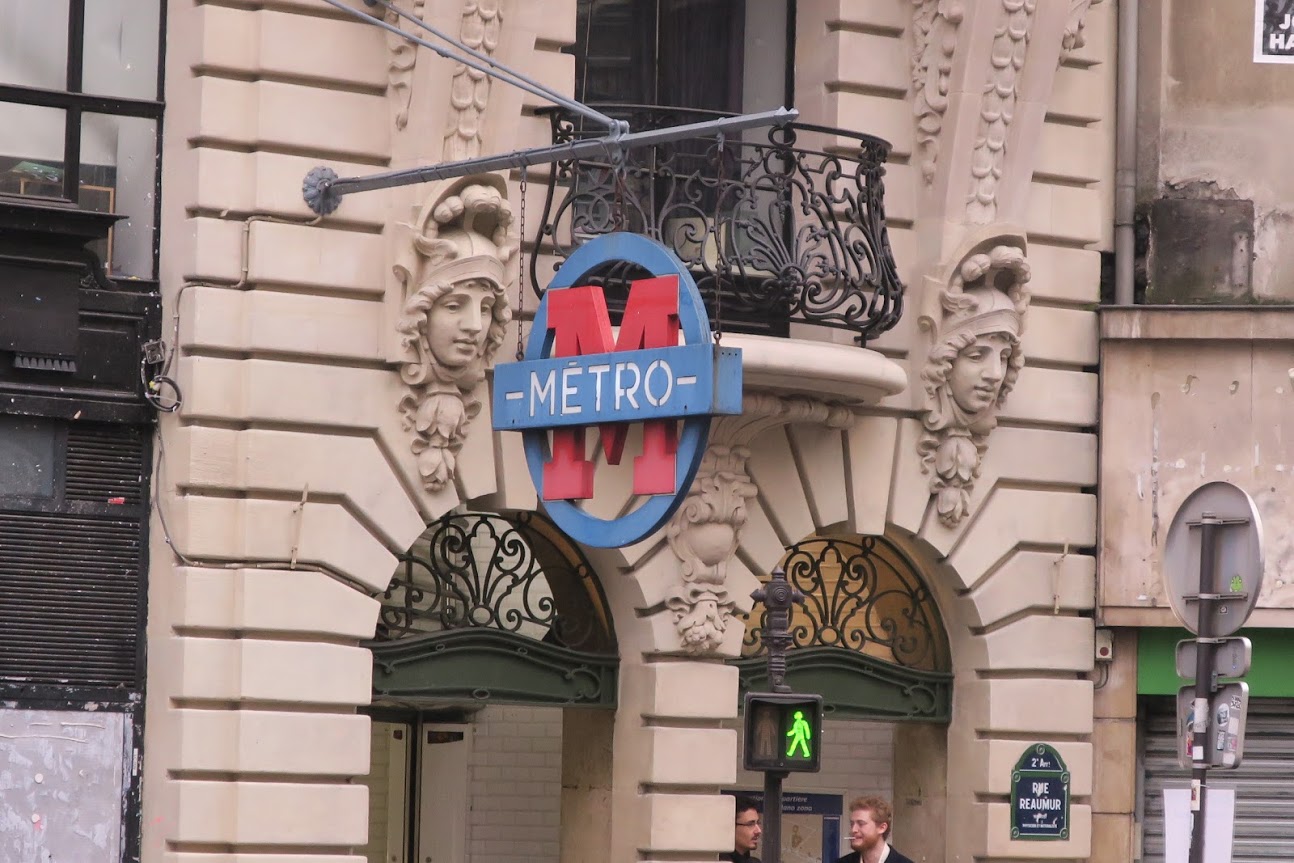 食後はリオスファミリーがパリを案内してくれました。 もう有名どころはほとんど行ったことがあるので本当にローカルな場所です。 例えばこの写真のメトロの看板は古いロゴでここにしかないそう。 |