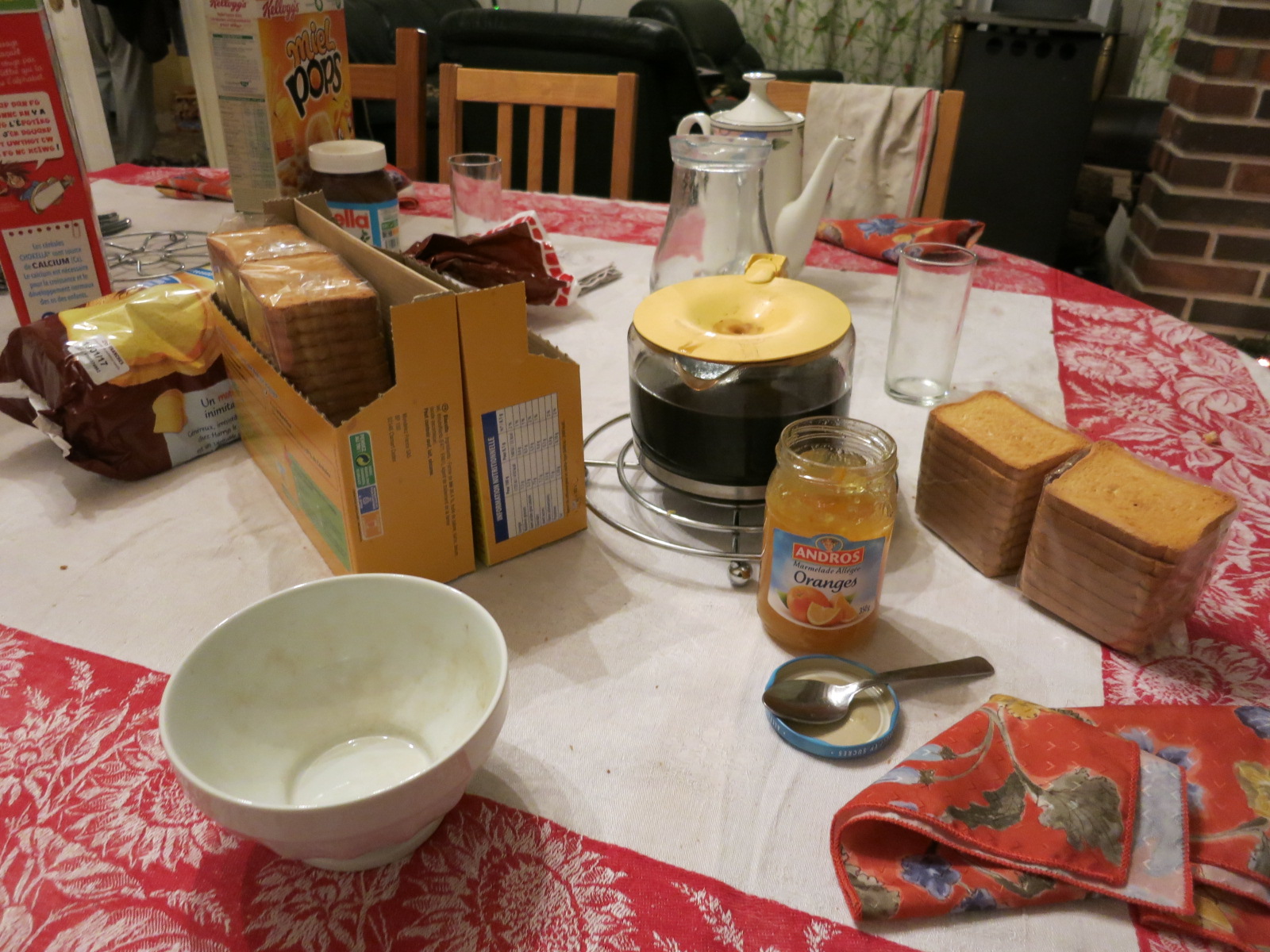 それでは、5日目。朝ごはんからです。 フランス家庭の朝ごはんの特徴はとにかくコーヒーカップが大きいことでしょうか。カップというより丼ぶり。ボルというそうです。 これにたっぷりのコーヒーやミルク、お茶を飲みます。 そしてジャムやヌッテラをぬったパンやビスケットをいただきます。