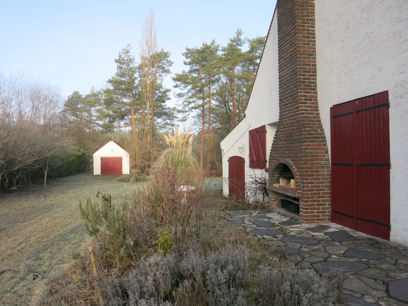 それではお出かけです。まずはお庭をお散歩。 ロリス家の別荘には大きなチムニーがあります。 家の中では薪ストーブがセットされています。 外側はバーベキューコンロ。なるほど効率的なチムニーの使い方ですね。