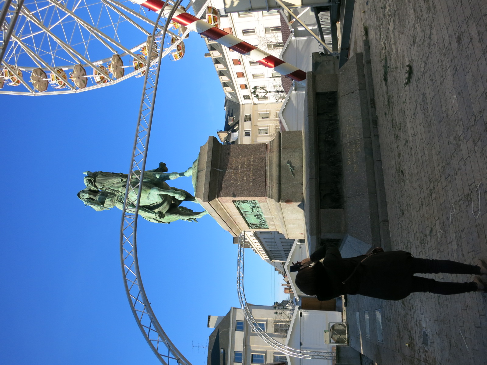 オルレアンはジャンヌ・ダルクの街。 駅前にはどかんと大きな像があります。 百年戦争の末期、フランス最後の砦であったオルレアンを救ったのがジャンヌ・ダルク。だからジャンヌ・ダルクはオルレアンの人々にとってもフランス人にとっても、永遠のヒロインでして、ここ、オルレアンは彼女を語るときには最重要な場所なのです。 |