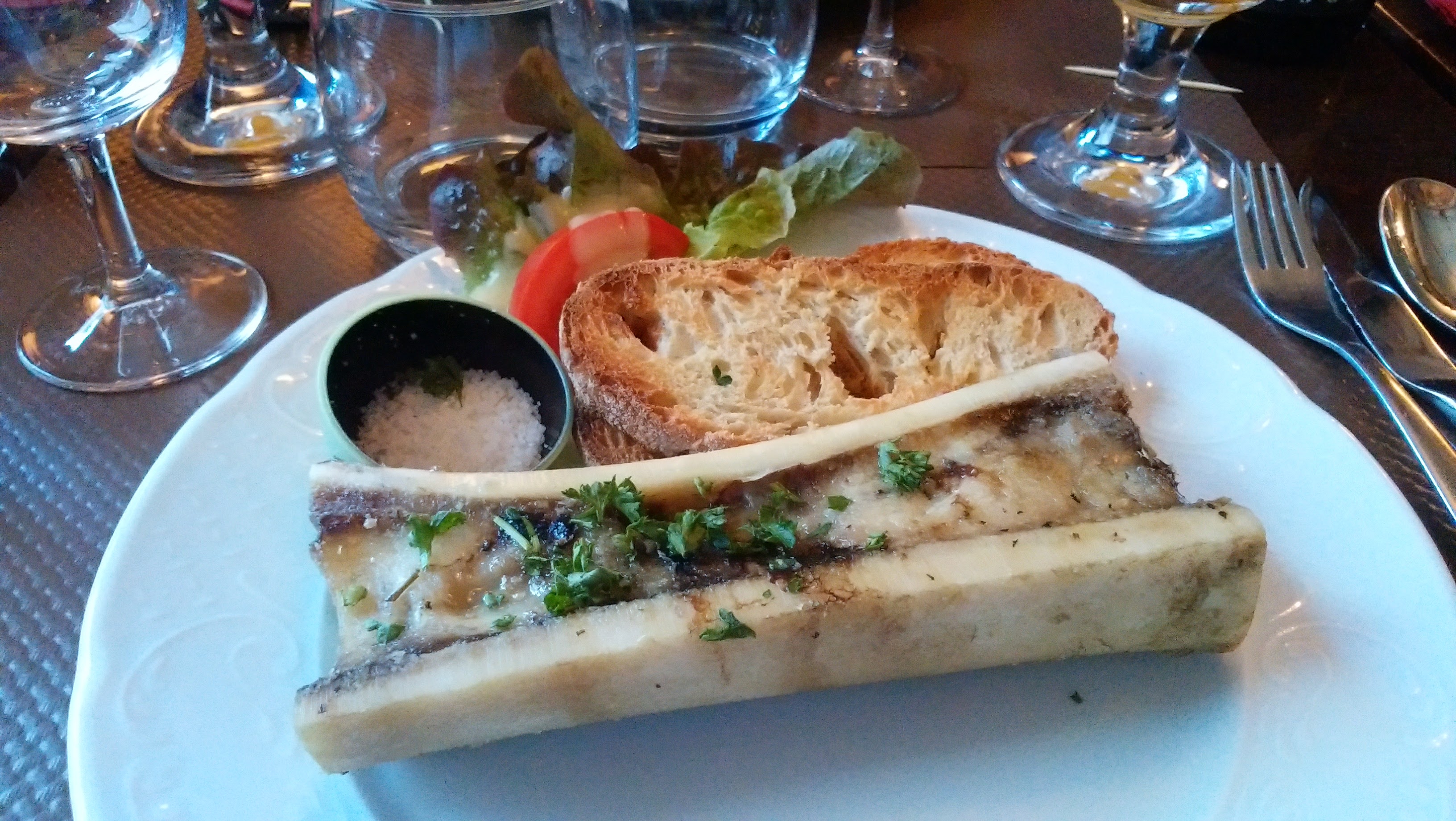 PORTOという美味しい食前酒をいただいたあとにはこんなl'os a moelle(ロス・ア・モワル)という骨髄料理です。コラーゲンたっぷり感。