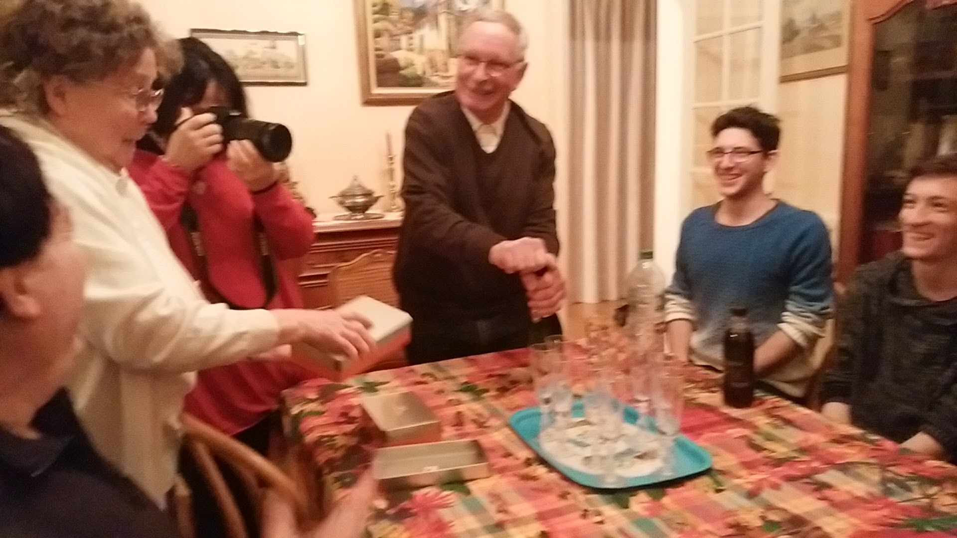 そして夕食はオイルフォンデュでした。 夕食といってももう夜中ですけど。 みんな目が硬い! そしておいしいチーズを食べながらありがちな言葉の違い話が盛り上がって盛りだくさんの一日もおしまい。おやすみなさい。 |