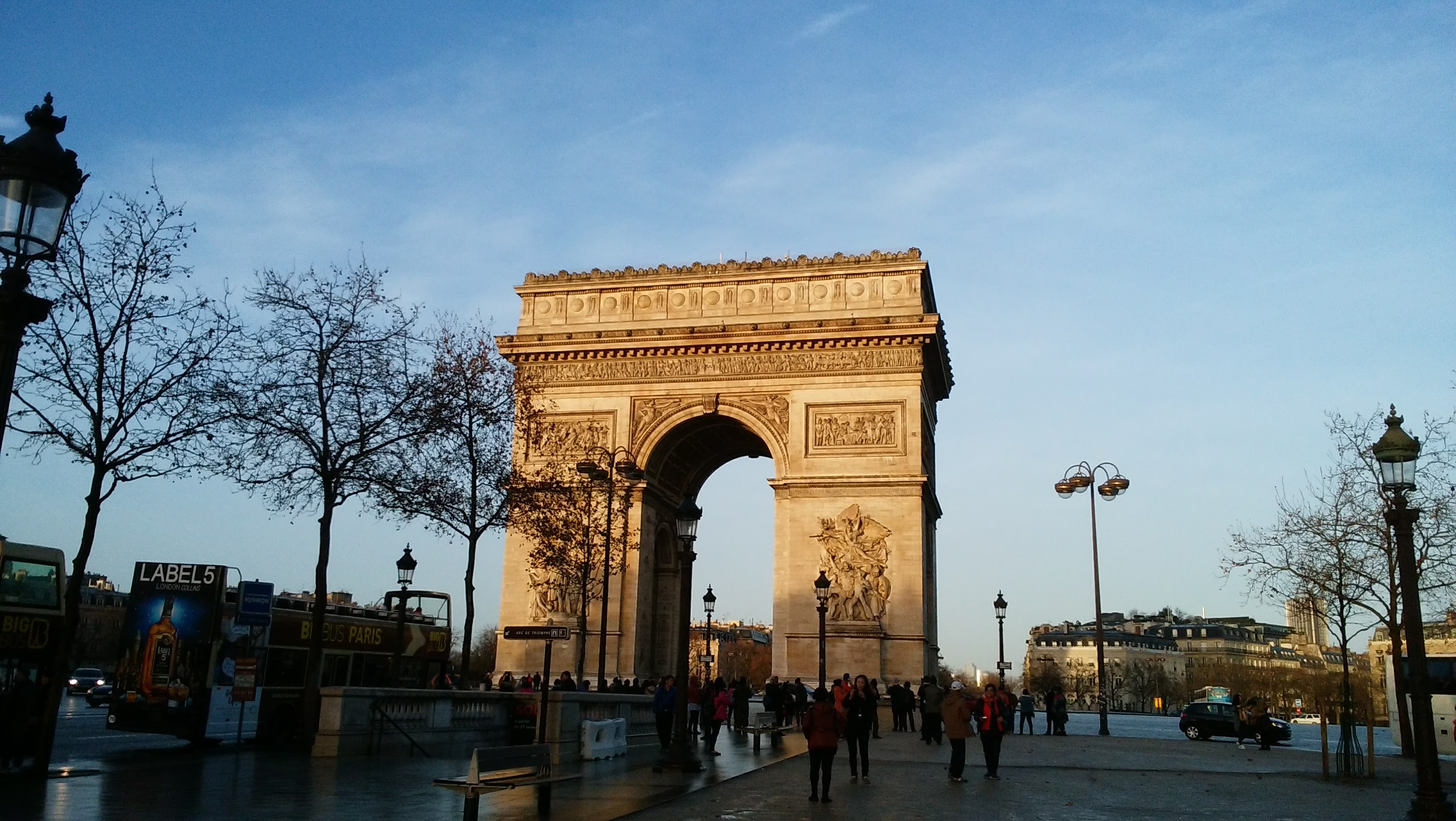 さぁ、2日目。観光開始です。 ホテルから地下鉄に乗ってシャンゼリゼ通りへとやってきました。 駅から地上へ出るといきなり凱旋門。 パリ! |