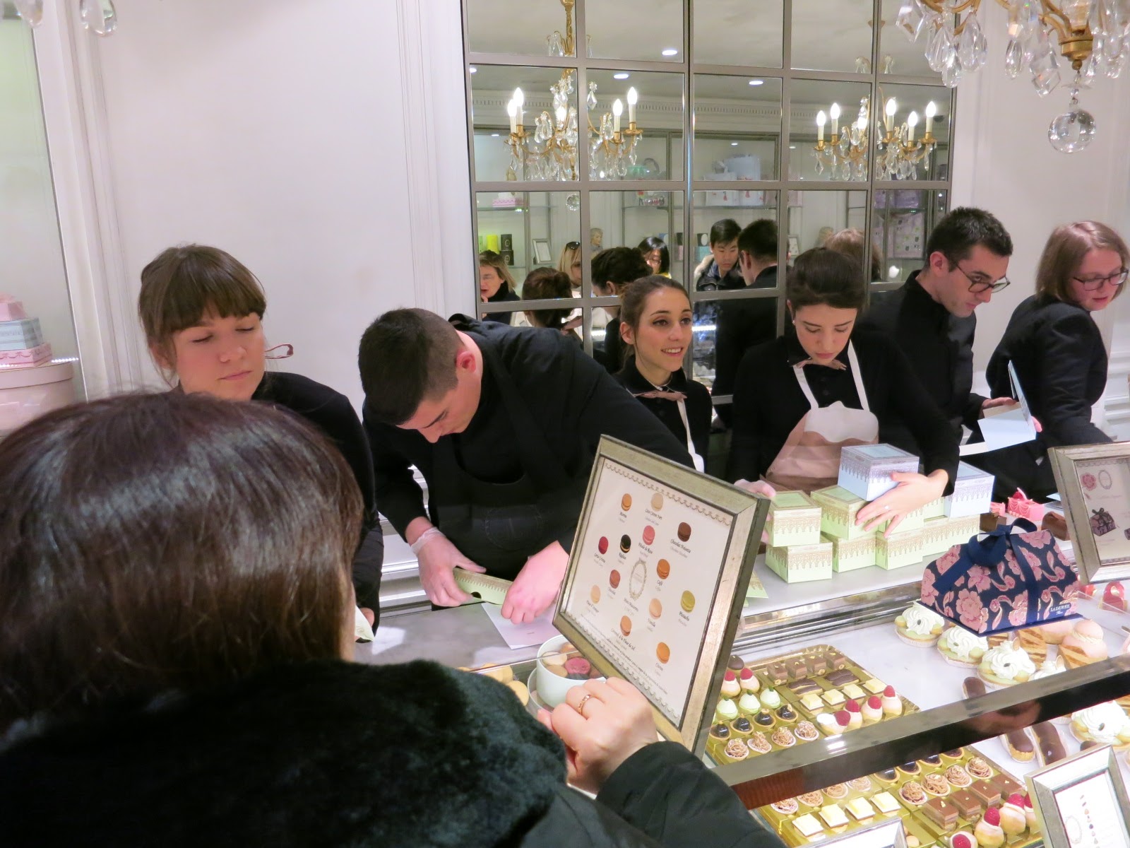 Laduree ラデュレは超有名なお菓子屋さん。マカロンが有名です。 クリスマスイブの今日は店内満員状態でした。