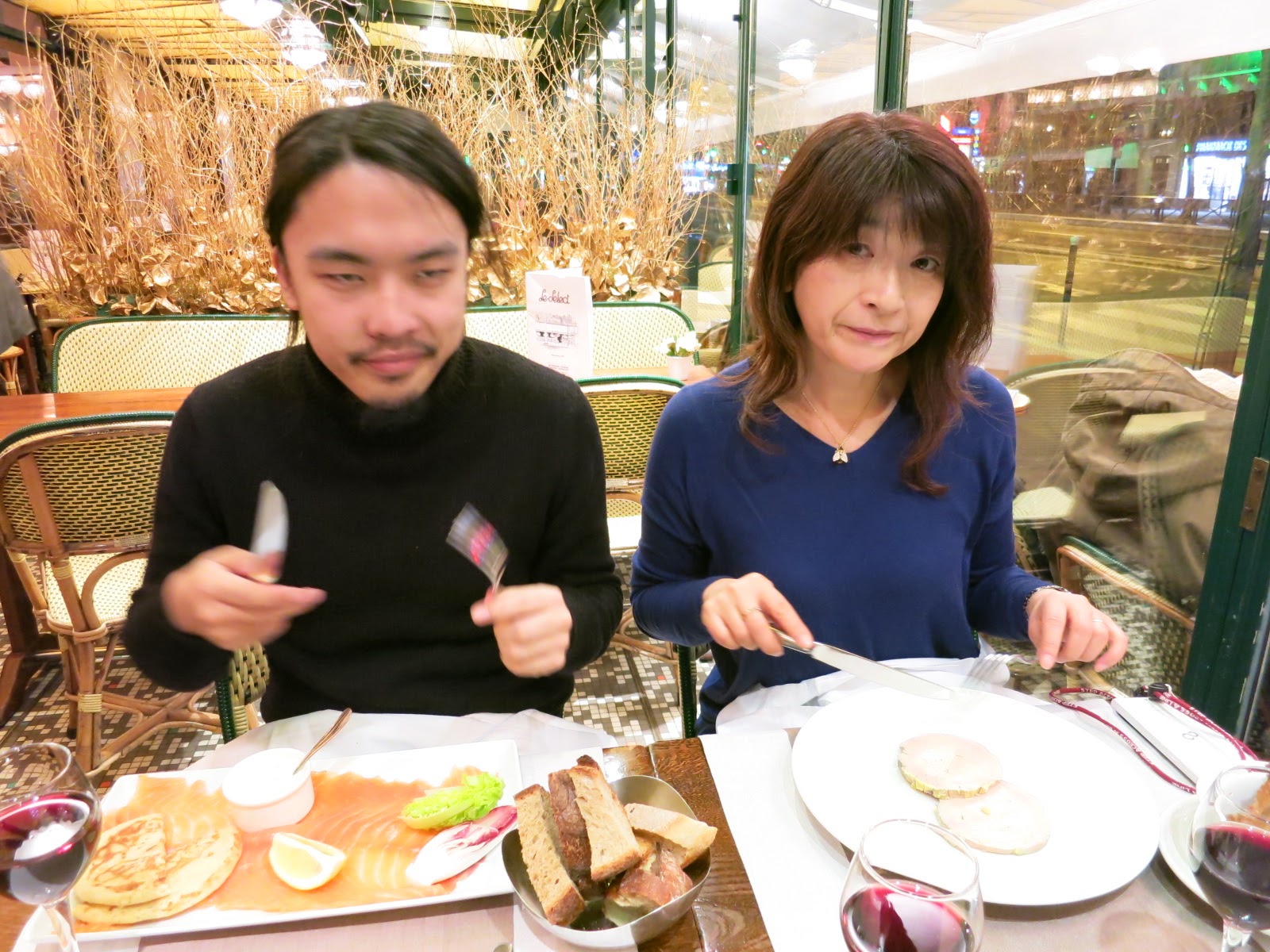 夕食です。17時からレストランを予約していました。そこへ行ってみるとまだ開いていません。店員に予約あるねんと言ってみるとクリスマスなので今日は19時からって。ほんなら予約取るなよ!日本人には考えられない事態でしたが文化の違い。 ま、周りはたくさん空いていたのでそこはキャンセルしてお向かいのレストランにしました。 息子は大好きなサーモンの前菜。一匹全部入っている勢いのサーモンです。これだけでお腹よくなるなぁ。 ママはフォアグラのパテ。フォアグラもこれだけあると気持ち悪くなる!? |