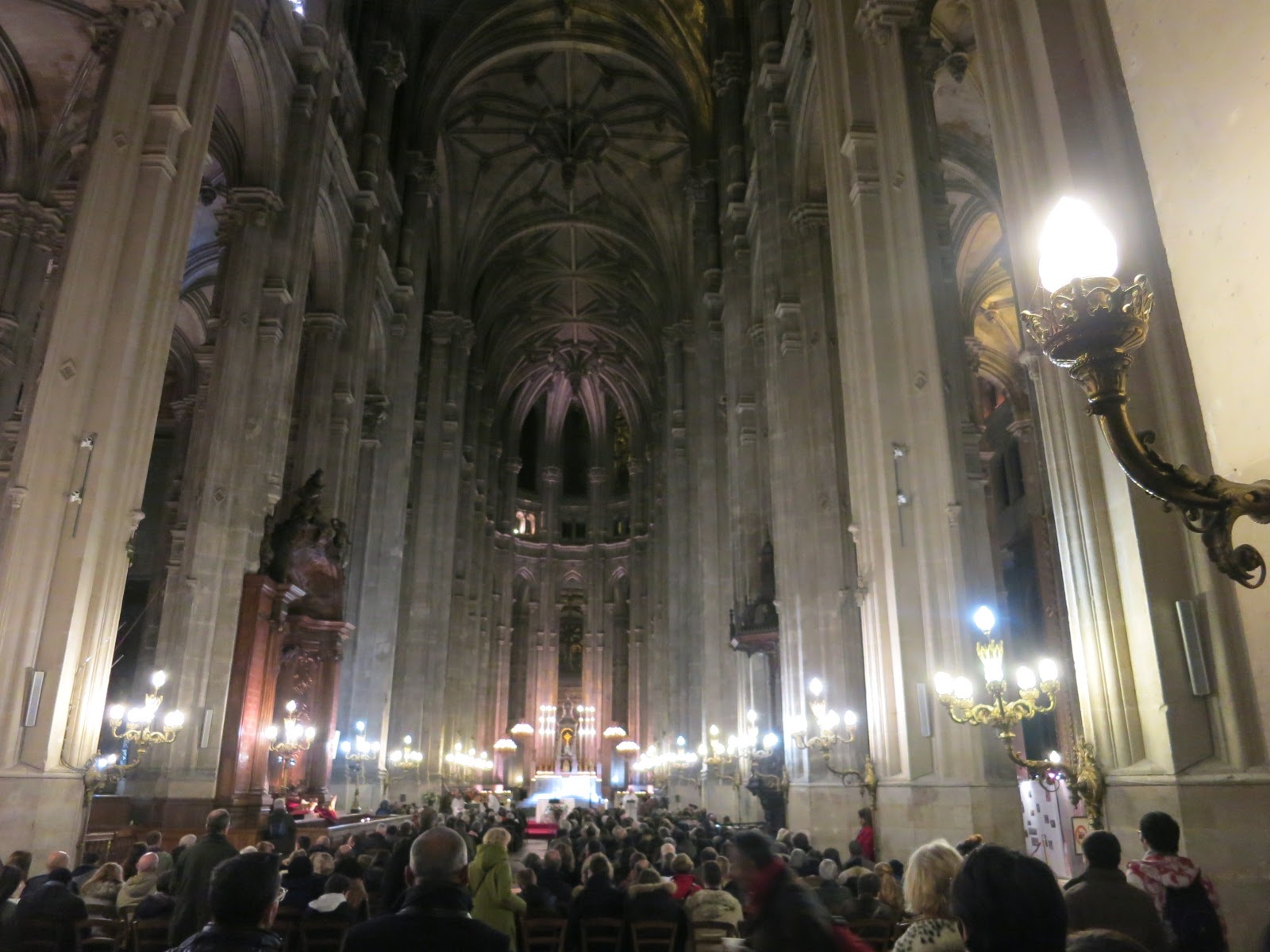 今夜はクリスマス・イブ。クリスチャンな人々はこの日の夜間にミサへ行きます。 我々もクリスマス・イブにパリに家族でいるという奇跡的な旅行中なので、ミサを見学させてもらうことにしました。フランスの友人に良さそうなところを教えてもらい、やってきました。 写真はミサ中。すごい大きなパイプオルガンのサウンドが響きます。 |